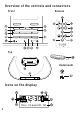 Overview of the controls and connectors Front Remote Standby Menu Volume + Volume − Preset Alarm Info − Select Source Sleep Menu + Standby Aux in Top x7 Underneath 9V DC Icons on the display iPod APSX^ =^f _[PhX]V) 6[ 2