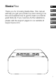 Contents 4 Introduction 4 5 6 Top panel controls Rear panel connectors Display 7 Getting started 7 Quick set up 8 Listening to radio 9 Storing and selecting presets EN 10 Using the alarms 10 11 12 12 12 Setting a radio alarm Setting a tone alarm Switching an alarm on/off Snoozing a sounding alarm Cancelling a sounding alarm 13 Setting the sleep timer 13 Setting the kitchen timer 14 Options and settings 14 15 15 16 18 18 General settings Audio settings Display settings Clock settings Autotune