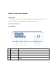 Chapter 1 Know Your Computer 1.1 Packing List When receiving the mini pc, please open the package and carefully remove the product. If there is any omission or damage, please contact the supplier immediately. 1.2 Interface Description 1.2.1 front view 1 USB 3.0 to connect USB devices, such as: USB flash drive, USB mouse, etc. 2 USB 2.0 to connect USB devices, such as: USB flash drive, USB mouse, etc. 3 Headphone jack Connect 3.
