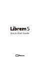User Guide The Librem 5 User Guide contains more information about the operating system and built-in applications. It also includes introductory guides, including: • An overview of the phone’s user interface • Connecting to a mobile network • Placing and receiving calls • Sending and receiving messages • Setting up wireless Internet • Installing applications The guide is provided as a collection of web pages on the phone, and can be accessed via an icon on the home screen.