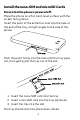 Install the nano-SIM and microSD Cards Ensure that the phone is powered off. Place the phone on a flat, hard, level surface with the screen facing down. Insert the point of the extraction tool into the hole at the end of the tray, at right angles to the side of the phone. Push the point firmly into the hole until the tray pops out, then gently pull the tray out of the slot. 1. Insert the nano-SIM card into the tray 2. Insert a microSD card into the tray (optional) 3.