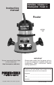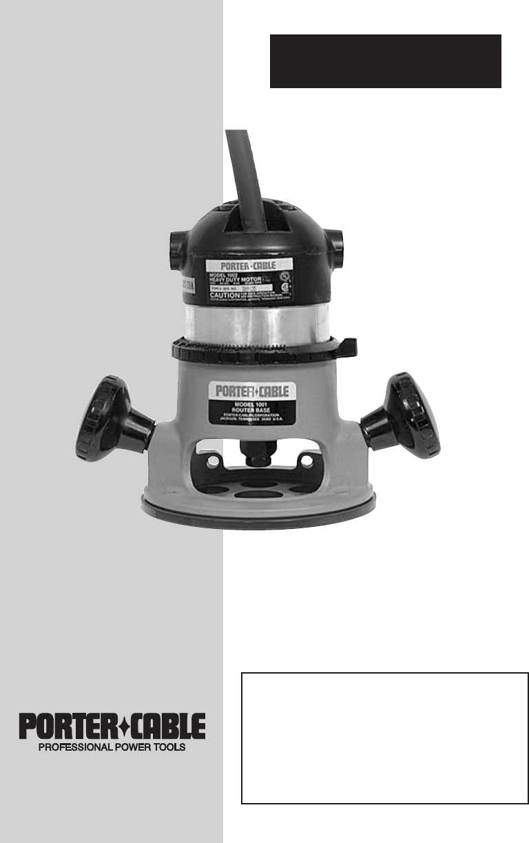 Instruction manual ESPAÑOL: PÁGINA 17 FRANÇAISE : PAGE 31 Router MODEL 100 To learn more about Porter-Cable visit our website at: http://www.porter-cable.com IMPORTANT Please make certain that the person who is to use this equipment carefully reads and understands these instructions before starting operations. The Model and Serial No. plate is located on the main housing of the tool. Record these numbers in the spaces below and retain for future reference. Model No.