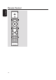 Remote Control (continued) English n DISC MENU – For DVD, enters or exits disc contents menu. – For VCD/SVCD, enters digest menu while in stop mode; turns on/off PBC mode during playback. o OK – Confirms an entry or selection. 14 p Cursor keys 15 – DISC: selects movement direction in the menu. – RADIO: press up or down to tune the radio frequency. – RADIO: press left or right to start auto search. 16 19 q TITLE 2 20 – For DVD, go back to the previous menu. – For VCD version 2.
