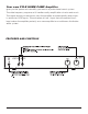 Specifications Input Impedance, balanced (unbalanced) ............................. 20 k-Ohms Continuous Output Power Stereo Mode 20 Hz to 20 kHz, 8 Ohms .................................................. 60 Watts x 2 1 kHz, 4 Ohms, ................................................................. 70 Watts x 2 Maximum Power, 8 Ohms.................................................. 65 Watts x 2 Maximum Power, 4 Ohms..................................................