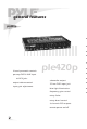 general features ple420p 4 band parametric controls ple420p pre-amp DVD & AUX input via RCA jacks subwoofer output output volume control 3.
