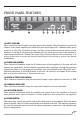FRONT PANEL FEATURES (1) INPUT GAIN (dB) These controls are used to adjust the input gain of each channel. They determine how loud each channel of the power amplifier will sound for a given input signal level. Maximum input gain is achieved at the fully clockwise setting, and this setting yields maximum mixer/system headroom. A setting of less than fully clockwise will yield lower system noise at the expense of mixer/system headroom. Turning the control fully counterclockwise is the off setting .