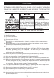 CAUTION TO PREVENT FIRE OR SHOCK HAZARD, DO NOT USE THIS PLUG WITH AN EXTENSION CORD, RECEPTACLE OR OTHER OUTLET UNLESS THE BLADES CAN BE FULLY INSERTED TO PREVENT BLADE EXPOSURE. TO PREVENT FIRE OR SHOCK HAZARD, DO NOT EXPOSE THIS APPLIANCE TO RAIN OR MOISTURE. , WARNING:TOREDUCETHE RISK OF ELECTRIC SHOCK DO NOT REMOVE COVER (OR BACK), NO USER S E R V I C E A B L E PA R T S INSIDE REFER SERVICING TO QUALIFIED SERVICE PERSONNEL.