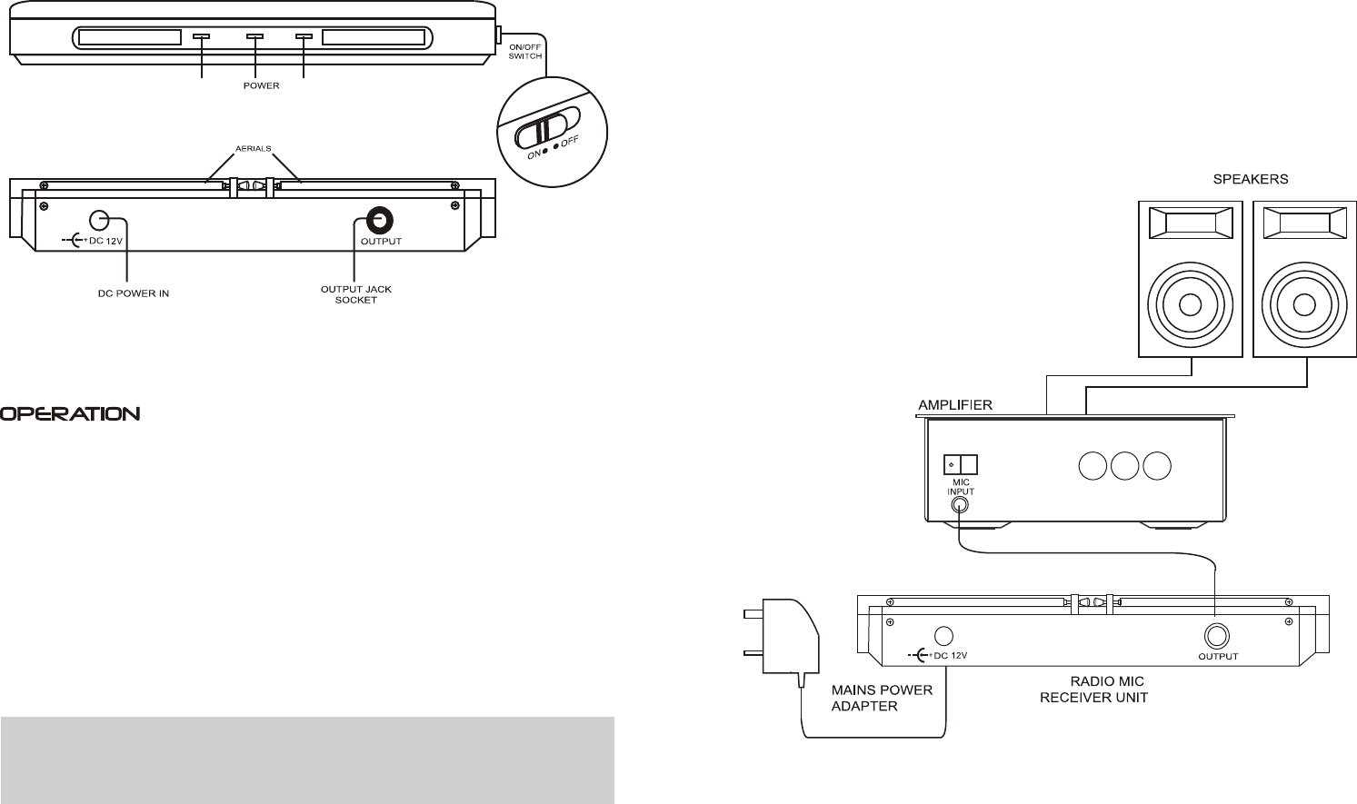 1. Switch on the wireless microphone receiver unit by pressing the POWER