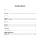 Operation Manual Table of Contents Welcome! ------------------------------------------------------------------------------------------------------- 2 Precautions --------------------------------------------------------------------------------------------------------3 Installation Where to Install -------------------------------------------------------------------------------------------------- 4 Installation ---------------------------------------------------------------------------------------------------