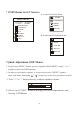 * OSD Menus in A/V Source A. Source Selection Menu SOURCE MAIN MENU AUTO DETECT CUBS.1 = VTSC H. SYNC = +15.7K Hz V. SYNC = +60.0Hz 1 VIDEO 1 VIDEO 2 BRIGHTNESS CONTRAST COLOR HUE SOURCE AUDIO RECALL RETURN B. Audio Input Selection Menu AUDIO EXIT MUTE VOLUME RECALL RETURN * Quick Adjustment OSD Menus 1. By pressing "MENU" button, you may open the MAIN MENU, using "+" or "-" together to pick out OSD functions. 2.
