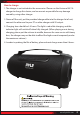 Wireless BT Streaming: 1. Turn the power button to “ON”, then you will hear a “Bluetooth Device Ready To Pair” tone. The LED light blinks quickly. The speaker is now in pairing mode. 2. Activate Wireless BT of your mobile phone and search for the device name “PyleUSA” then connect it. Once paired successfully, the Blue LED will blink slowly, and you will hear a tone “Bluetooth Device Connected Successfully” once connected. 3. Play the music from your mobile phone and enjoy. 4.