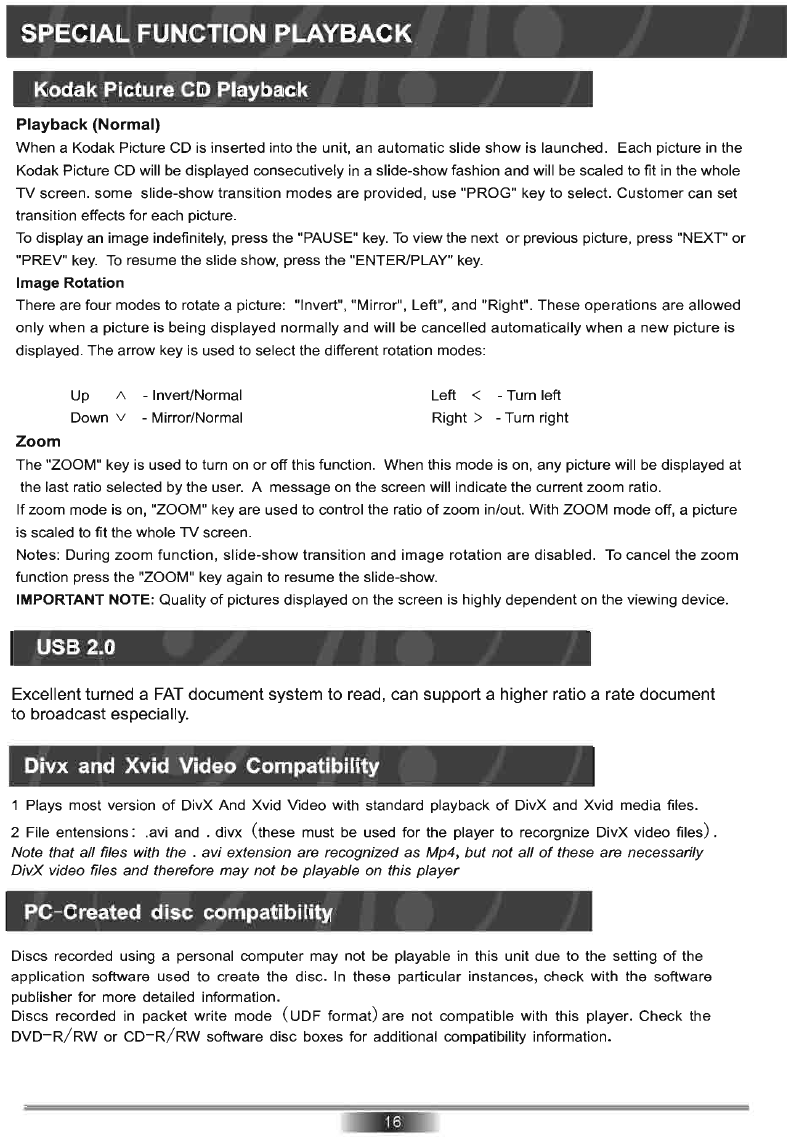 2 File entensions : .avi and . divx (these must be used for the player to recorgnize DivX video files) •