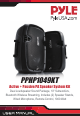 PPHP1049KT Active + Passive PA Speaker System Kit Dual Loudspeaker Sound Package, 10'' Subwoofers, Bluetooth Wireless Streaming, Includes (2) Speaker Stands, Wired Microphone, Remote Control, 1000 Watt