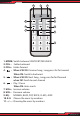 2 1 3 5 6 4 9 8 7 11 10 1. MODE: Switch between USB/SD/BT/FM/LINE IN 2. FOL- : Folder backward 3. FOL+: Folder forward 4. : When USB/SD: Previous Song , Long press for fast rewind When FM: Swich to backward 5. : When USB/SD: Next Song , Long press for fast forward when FM: Swich to next channel 6. : Play / Pause When FM: Auto search 7. VOL+: Increase volume 8. VOL-: Decrease volume 9. EQ: NORMAL, BASS, POP, ROCK, CLASS, JAZZ. 10. 0-9: Choose the music by numbers 11.