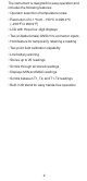 Temperature/Humidity Range Operating: Stated Accuracy: Useful Range: Storage: Humidity: 18°C to 28°C (64°F to 82°F) 0°C to 40°C (32°F to 104°F) −40°C to 65°C (−40°F to 149°F) 10% to 90% (non-condensing) Dimensions 3 cm D x 8.4 cm W x 15.8 cm H (1.2 in x 3.3 in x 6.2 in) Weight with batteries: 227 grams (8 ounces) Ingress protection: Meets IEC-529 IP-54 for dust and water resistant enclosures.