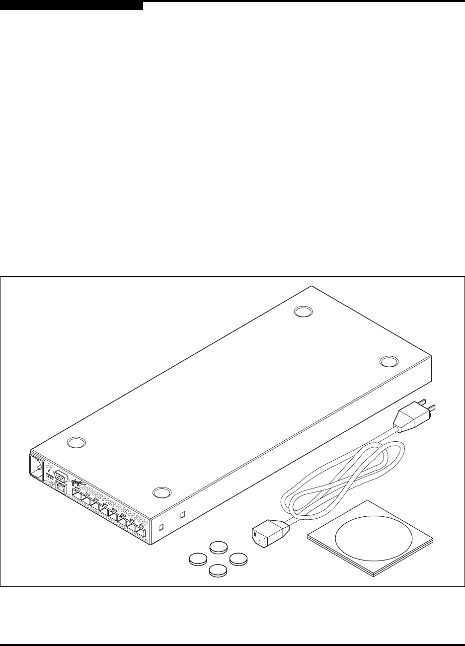 Unpack the switch and accessories. The SANbox2-8c product is shipped with the