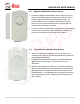 QSDL503AD USER MANUAL Section 9: TECHNICAL DATA Main Control Unit: Input voltage: DC6V-9V Working current: <12 m A Receive frequency: 433.5MHZ-434MHZ Infrared Sensor: • Input volts: DC4.5V (AAAx4) • Stand by current: <0.1mA • Transmission current: <8mA • Transmission frequency: 433.5MHZ-434MHZ • Transmission distance: >100m (330 ft) (open area) • Inductive distance: >5m (16 ft) (open area) • Low voltage indication: <3.1V +/- 0.1V Magnetic Window/Door Sensor Alarm: • Input volts: DC4.