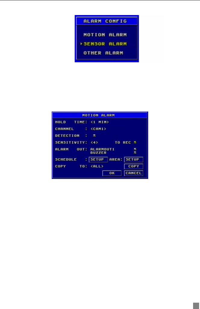 If you select Motion Alarm in Alarm Configuration the submenu shown as Fig.