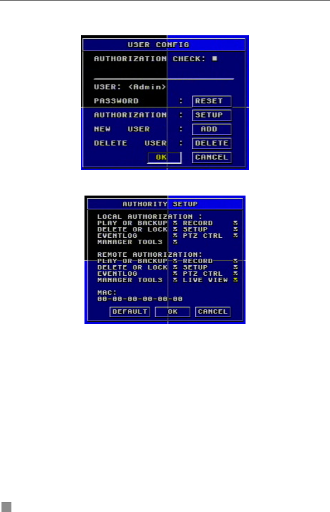 Administrator can add users, set users’ authorization and delete users.