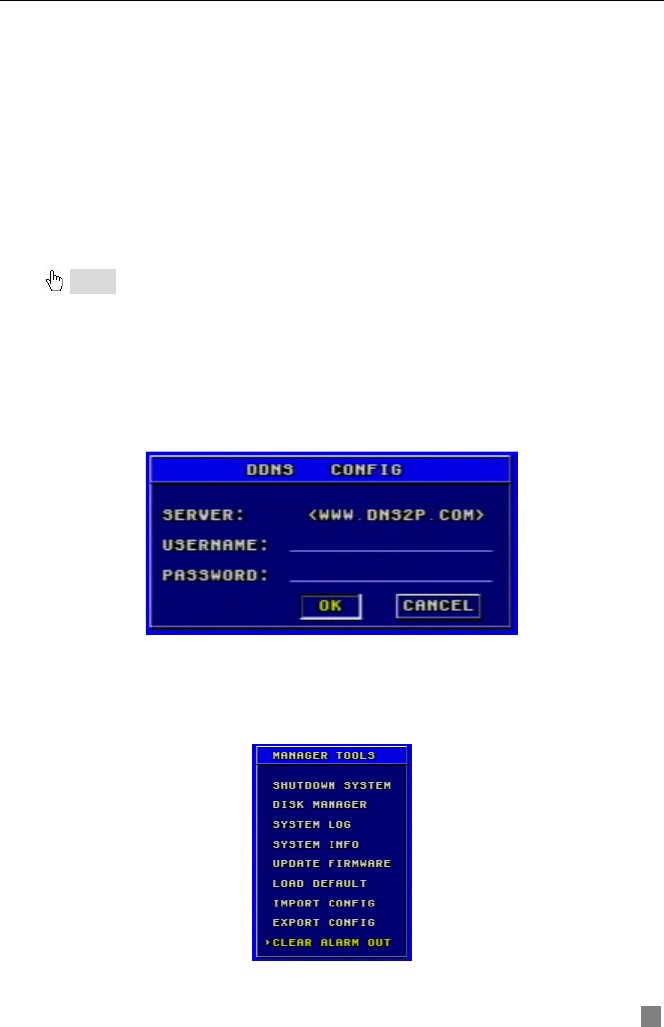 DDNS Configuration submenu is shown as Fig. 3.22. The DVR does not