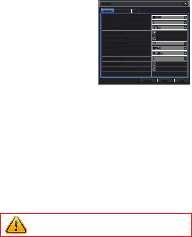 Language: Select your preferred menu language. The NVR will have to restart for this change