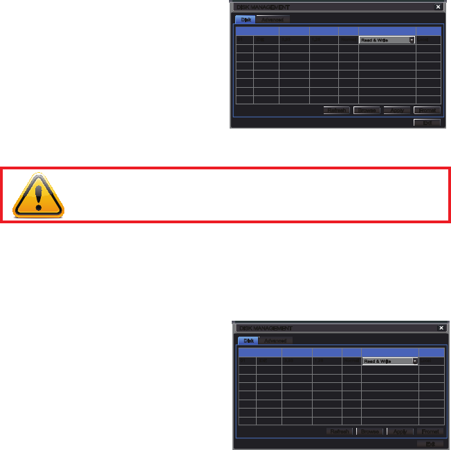 This window displays information on the drive or drives mounted within the NVR including