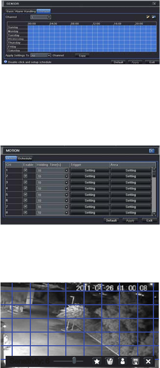 Select which cameras you wish to start recording on motion detection. Set the holding time