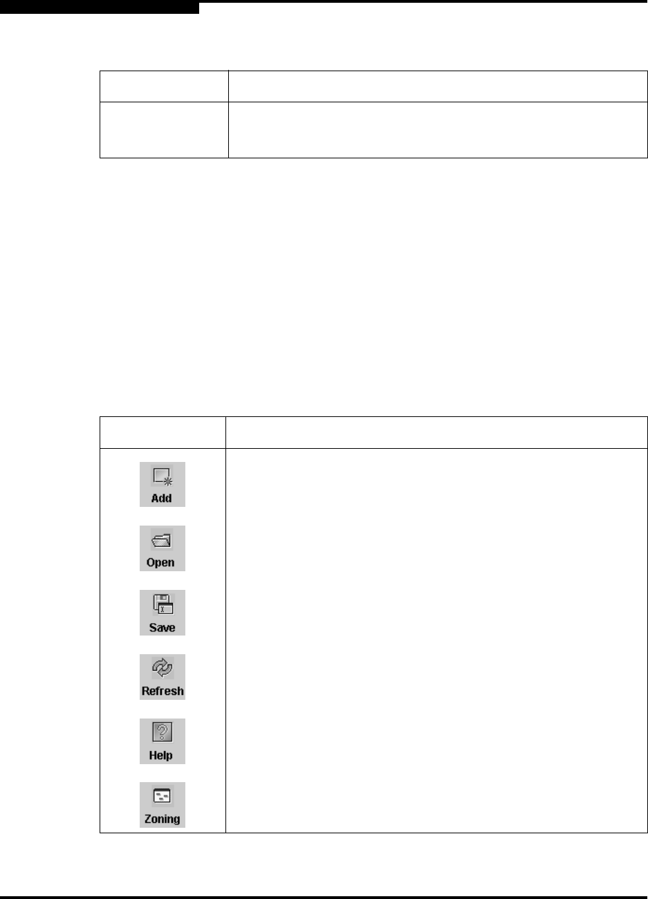 SANbox Manager functions as shown in Table 2-3. The tool bar buttons are an