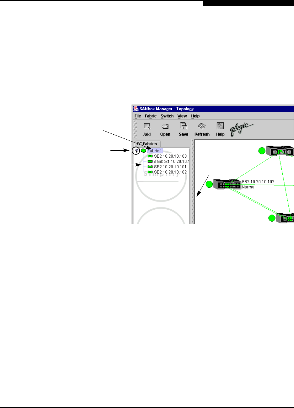 ■ To open the topology display from the fabric tree, click a fabric entry.