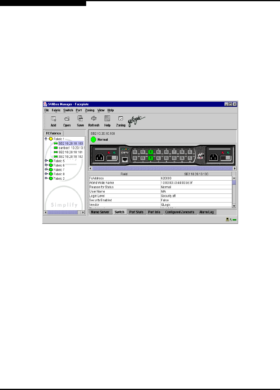 The faceplate display shown in Figure 2-11 displays the switch name and