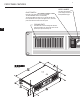 VERSTÄRKUNGSREGLER, CH1, CH2 Die Markierungen zeigen die Dämpfung in dB an. Für normale Anwendungen sollte dieser Regler im oberen Messbereich bleiben (Dämpfung von weniger als 10 dB). Wenn er auf einen Wert in der unteren Messbereichshälfte eingestellt wird, kann die Signalquelle überlastet werden, bevor der Verstärker seine volle Leistung erreicht. RACK-EINBAU Passt in ein standardmäßiges 19-Zoll-Rack (2 RU). Zur Befestigung mit 6-mm-Schrauben geeignet, je nach den Rack-Schienen.