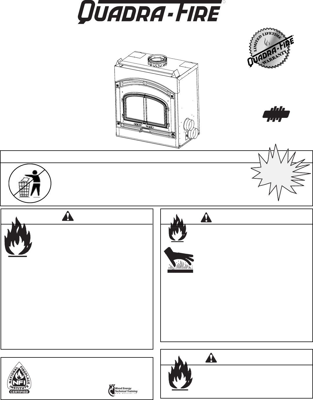 H. Contact Information R CONTACT INFORMATION: Hearth & Home Technologies 1445 North Highway Colville, WA 99114 Division of HNI INDUSTRIES Please contact your Quadra-Fire dealer with any questions or concerns. For the number of your nearest Quadra-Fire dealer, visit our web site at www.quadrafire.com CAUTION Do NOT discard this manual. • Important operating and maintenance instructions included. • Read, understand and follow these instructions for safe installation and operation.