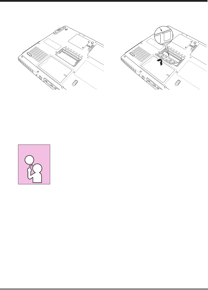 6. Insert the memory upgrade module at a 45 o angle and press it firmly onto the