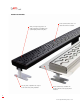 Features & Benefits: Electro-polished stainless steel or oil rubbed bronze finish as standard. Variety of designer style grates in all lengths including discreet in-fill tile grate. Optional lighting available to fit grates. Easy cut, plastic, adjustable feet to support shower channel body during installation. Shower channel body to suit either CPE shower membrane or hot mopped painted membrane. 6 www.QuARTzbyACO.