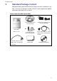 Installation Guide 2. Standard Package Content Before proceeding, please check the box contains the items listed here. If any item is missing, or if damage is evident, DO NOT install or operate the product and contact your dealer for assistance. Indoor Vandal Proof Mini Speed Dome Hard Ceiling Mount and Decoration Ring 12V DC Power Adaptor Power Cord (12V DC Only) Dome Body with 4.
