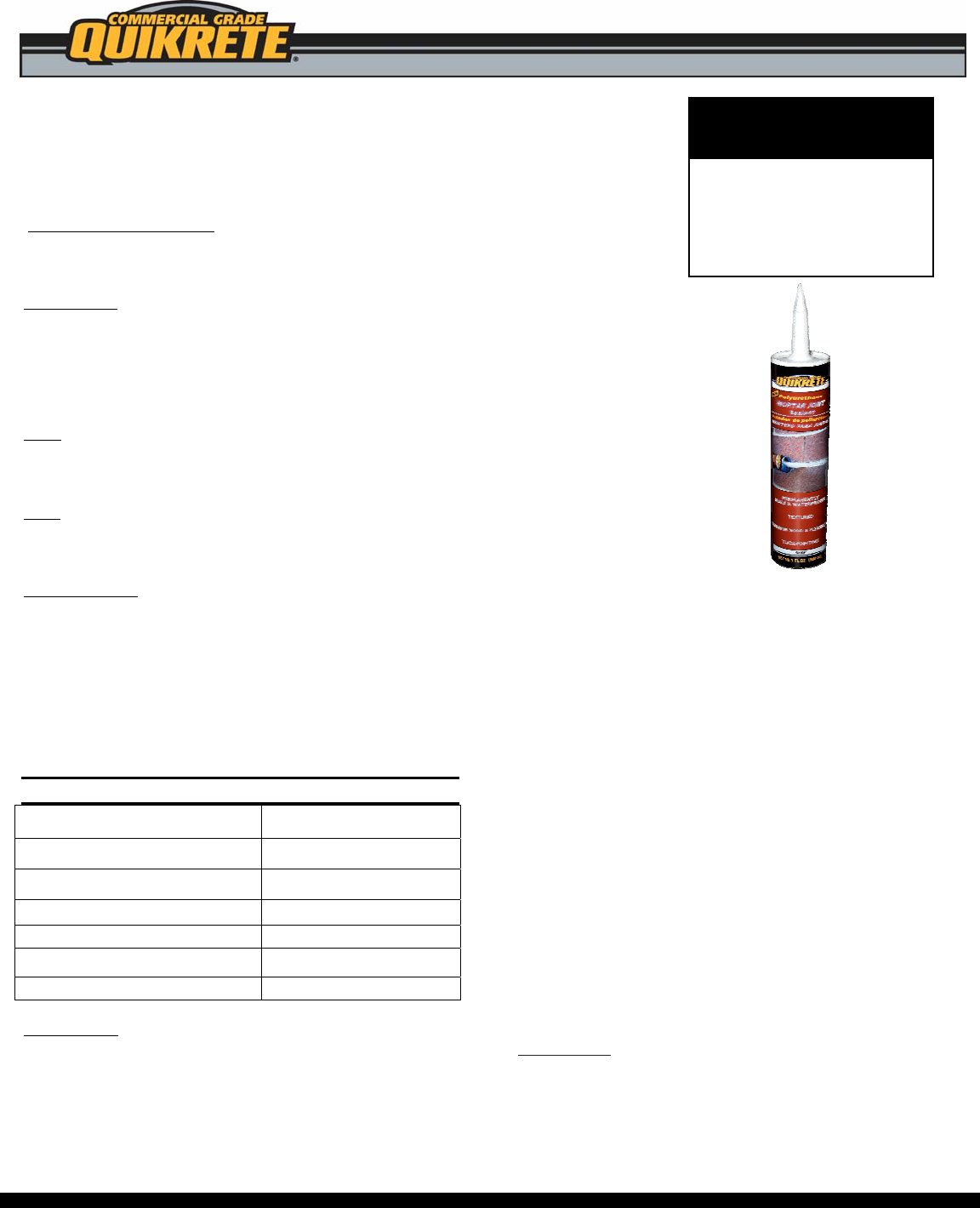 Sealant will bridge gaps up to 3/8” (10 mm) wide.