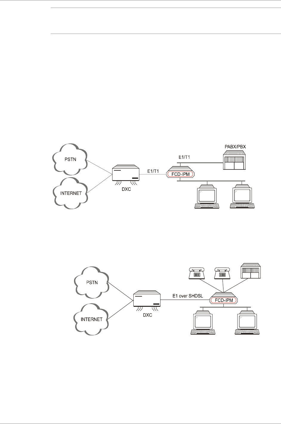 • FCD-IPM with PBX and LAN - In the application shown in Figure 1-1,