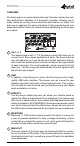 20 19 18 17 16 15 14 13 13. STEREO INPUTS (1, 2, 3): Used to connect the analog outputs of your keyboards to the Key-Largo. 14. EFFECTS SEND & RECEIVE: Stereo ¼” TRS jacks used to feed an external effects device. 15. MONITOR OUT: Stereo ¼” TRS balanced outputs are used to feed a pair of powered speakers for on-stage monitoring. 16. MAIN OUT: Stereo XLR balanced outputs are used to feed the PA system - transformer isolated to eliminate ground loops. 17.