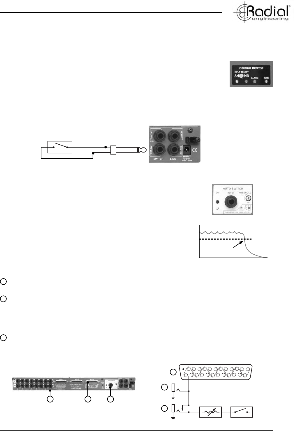 be connected to the dedicated AUTO SWITCH ¼” phone jack. The advantage to using the dedicated AUTO SWITCH input is that