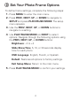 3 Set Your Photo Frame Options To define frame settings, complete the following steps: 1. Press MENU to enter the main menu. 2. Press PREV, NEXT, UP, or DOWN to navigate to SETUP and press PLAY/PAUSE/MODE. The setup menu appears. 3. Use the PREV, NEXT, UP, or DOWN buttons to navigate to a setting. 4. Use PLAY/PAUSE/MODE and NEXT to select options.