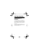 17-8003.fm Page 6 Thursday, July 22, 1999 9:47 AM 3. Insert the new battery as indicated by the polarity symbols (+ and –) marked beside the compartment. 4. Replace the battery cover. Notes: • The built-in memory saver stores messages and settings for a short time while you change the battery. • Turn off the pager when you are not using it. See “Automatic Operation.” • A battery should last for 850 to 950 hours of use. When battery power becomes low, the pager displays .