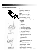 Contents and specifications Contents and Specifications: Contents: 1.Antenna 2.Binding key 3.Channel connection pin Specs: Size:51.5*24*15(mm) Channel number:4 channels Power standard:4.6-10V Frequency:2.4GHz Weight:5g Contents: 1. Antenna 2. LCD 3. Menu key 4. Turning wheel 5. Function key A throttle 6. Function key B Direction 7. Function key C the 3rd channel 8. The 3rd/4rd channel VR 9. The 3rd/4rd channel button 10. Recharge connection slot 11. Throttle trigger 12.Simulator port 13.Power switch 14.