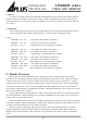 API4000M INTEGRATED CIRCUITS INC. SERIES VOICE OTP MODULE 6. Input & Output Data Instruction Format INPUT PA, Rn ﹔ Code Cycle Bytes Instruction Description 80 1 2 Set Data Port A to Rn.( Rn ÍPA) INPUT PB, Rn ﹔ 81 1 2 Set Data Port B to Rn. ( Rn ÍPB) INPUT PC, Rn ﹔ 82 1 2 Set Data Port C to Rn. ( Rn ÍPC) OUT PA, Rn ﹔ 88 1 2 Set the value of Rn to Data Port A. (PAÍRn) OUT PB, Rn ﹔ 89 1 2 Set the value of Rn to Data Port B.