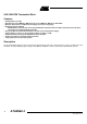 ATAR862-4 Pin Description: RF Part (Continued) Pin Symbol 21 CLK Function Configuration Clock output signal for microcontroller The clock output frequency is set by the crystal to fXTAL/4 VS 100 CLK 100 22 PA_ENABLE Switches on power amplifier, used for ASK modulation PA_ENABLE 50k Uref=1.1V 20 mA 23 ANT2 Emitter of antenna output stage 24 ANT1 Open collector antenna output ANT1 ANT2 Pin Description: Microcontroller Part Pin-No.