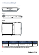 1-3 Dimensions & Weight Front View UNIT : mm 1mm = 0.03937 inch Side View Top View Model Product Dimension (W x D x H) Packing Dimension (W x D x H) Net Weight Gross Weight RNX119 Series 441.6 x 650 x 44 mm 17.4 x 25.6 x 1.73" 595 x 860 x 140 mm 23.4 x 33.9 x 5.5” 13.2 kg 29 lb 19 kg 41.8 lb The weight listed is only for the single console drawer. Weight will vary depending on additional accessories & options such as Integrated KVM, HDMI, DVI-D, AV, audio & DC power.