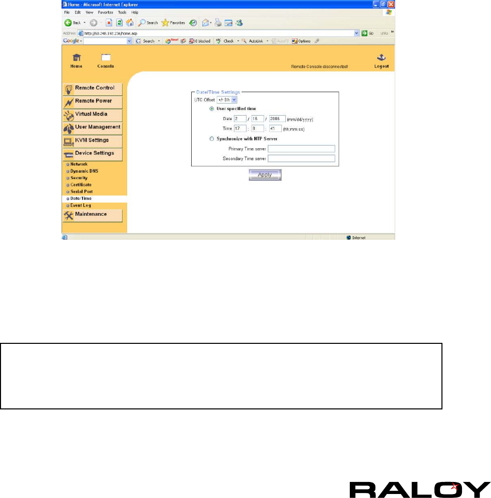 clock automatically to the current UTC time. Because NTP server time is always UTC, there is a setting that