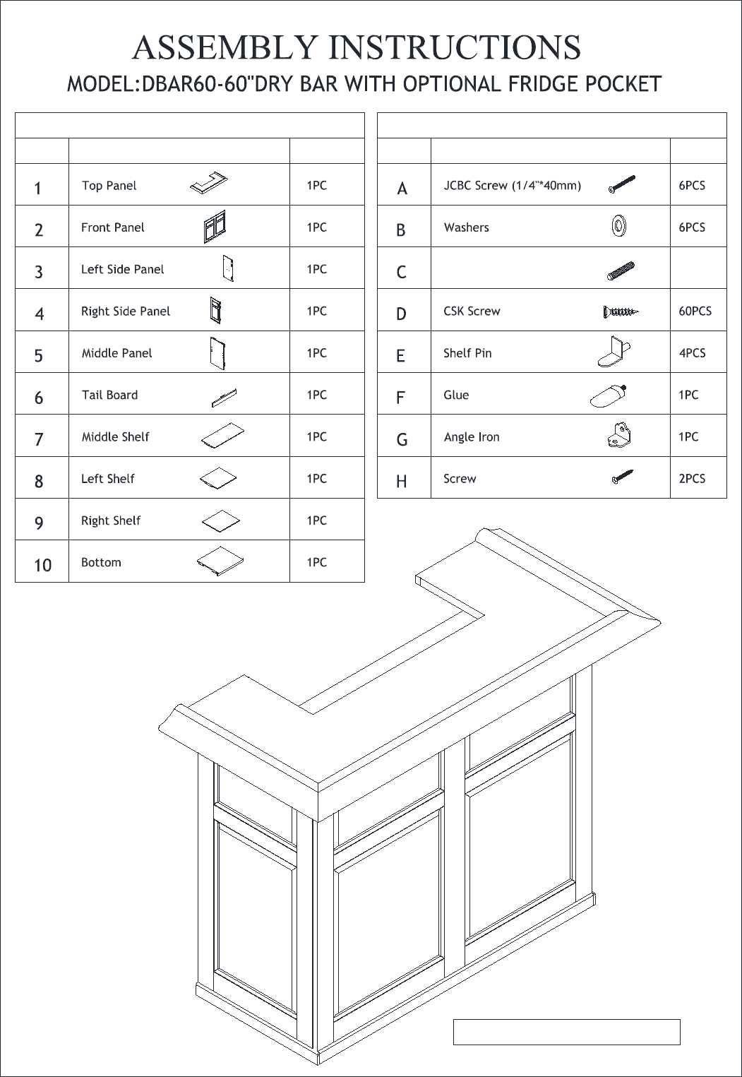 ITEM Part List DESCRIPTION QTY ITEM Hardware List DESCRIPTION Wood Dowels COMPLETED ASSEMBLY QTY 16PCS