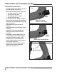 THE BATTERY AND CHARGING SYSTEM INSTALLING THE BATTERY • Insert the battery into the tool as shown on the right with the clip facing out. #1 • The battery has two positions in the tool: 1. The “OFF” position—as shown in picture #1 to the right. 2. The “RUN” position—as shown in picture #2 to the right. OFF • To operate the tool be sure the battery is fully inserted into the tool. After installing the battery, note the LED light on the right side of the handle.