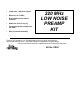 • 16 db Gain, 1 db Noise Figure • Runs on 9 to 15 VDC • Hi-Q tuned input to reduce overload • Small size to fit in any rig • The most popular preamp kit in the USA! • Easy 15 minute assembly 220 MHz LOW NOISE PREAMP KIT Perk up your reception on 220 MHz with this easy-to-build and install kit. Works well with any radio - especially effective in repeaters. Rugged design using a microwave transistor outperforms units costing triple the price! Kit No.