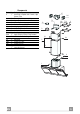 Components Q.ty Product Components 1 Hood Body, complete with: Controls, Light, Blower, Filters 2 1 Telescopic Chimney comprising: 2.1 1 Upper Section 2.2 1 Lower Section 9 1 Reducer Flange ø 150-120 mm 10 1 Adapting ring ø 120-125 mm 14.1 2 Air Outlet Connection Extension 15 1 Air Outlet Connection Ref. Q.ty Installation Components 7.2.1 2 Upper Chimney Section Fixing Brackets 7.3 1 Air Outlet Connection Support 11 6 Wall Plugs 12a 6 Screws 4,2 x 44,4 12c 6 Screws 2,9 x 9,5 Q.